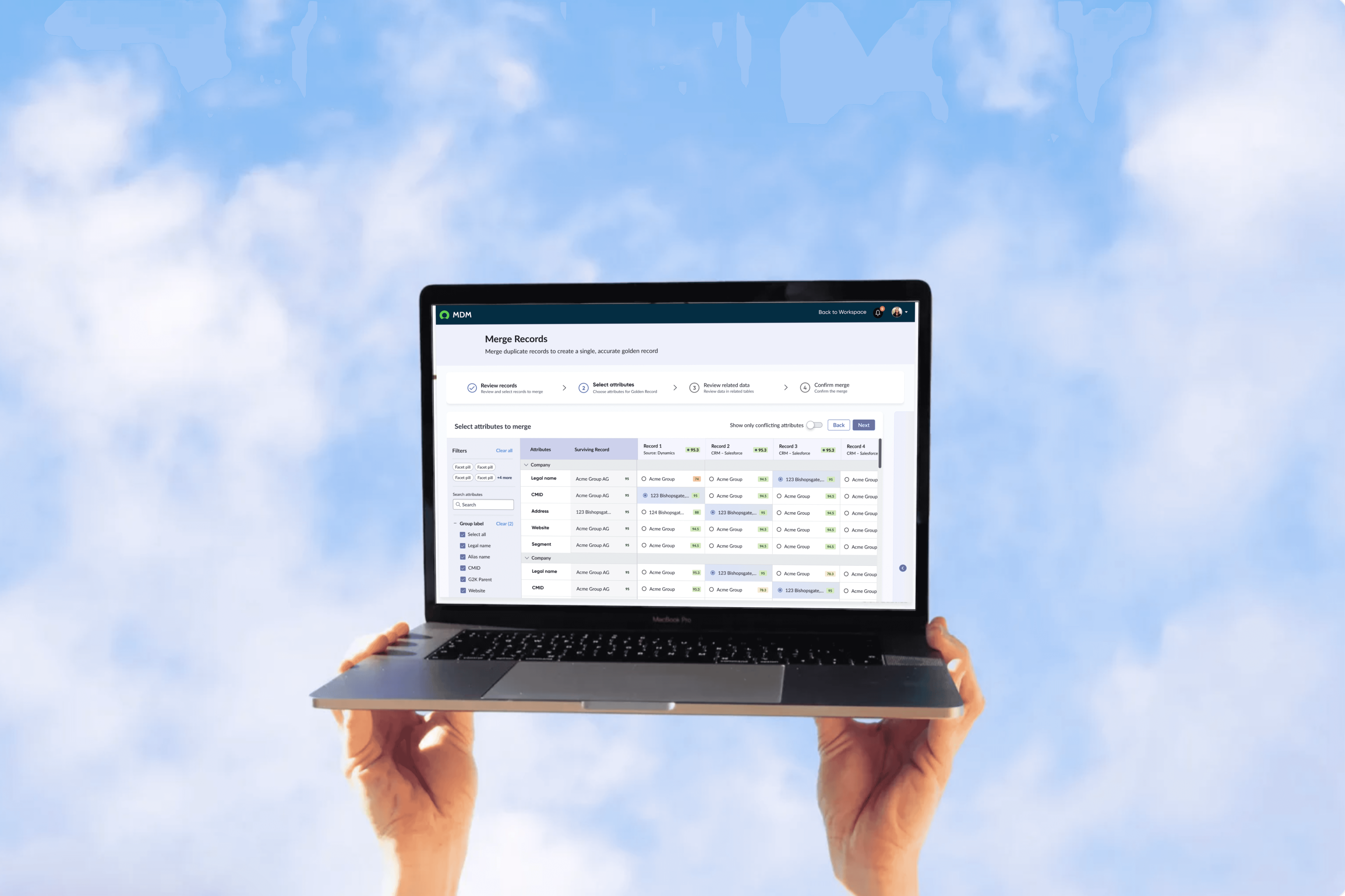I designed a core workflow within an enterprise Master Data Management product to help Data Stewards merge duplicate records into a single trusted Golden Record.
